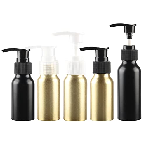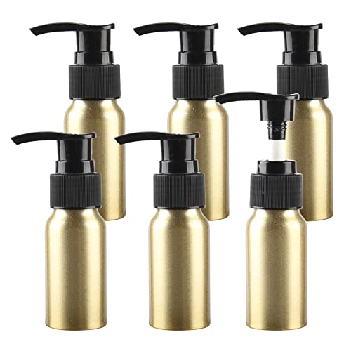 ZEOABSY 6 Pezzi 30ml Alluminio Oro Bottiglie Dosatori per Cosmetico Bagno Hotel, 30 ml Bottiglie con Nero Pompa per la Cucina e il Lozione Corpo Doccia Shampoo Gel Dispenser Viaggio