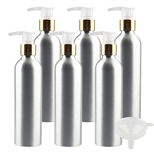 ZEOABSY 6 Pezzi, Alluminio Argento Bottiglie Dosatori per Shampoo, 250ml Bottiglie di con trasparente Pompa Ricaricabile per la cucina e il bagno Lozione Corpo Doccia Shampoo Gel Dispenser