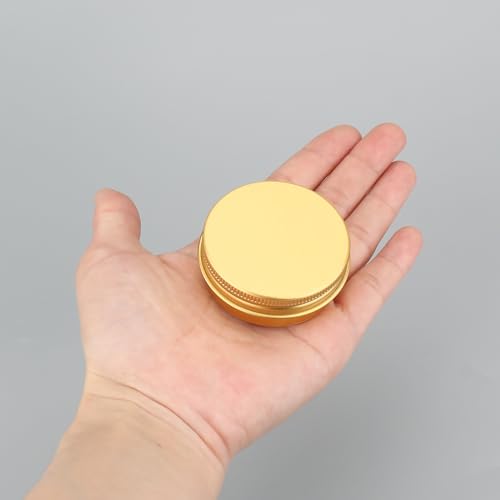 ZEOABSY 10 Pezzi Barattoli di alluminio 30ml a Vite Oro Scatola in Alluminio Forma Rotondo, Vasetti per DIY Candele Cosmetico Caramella Gadget Balsamo Labbra, 1x Etichette e 5x Spatola