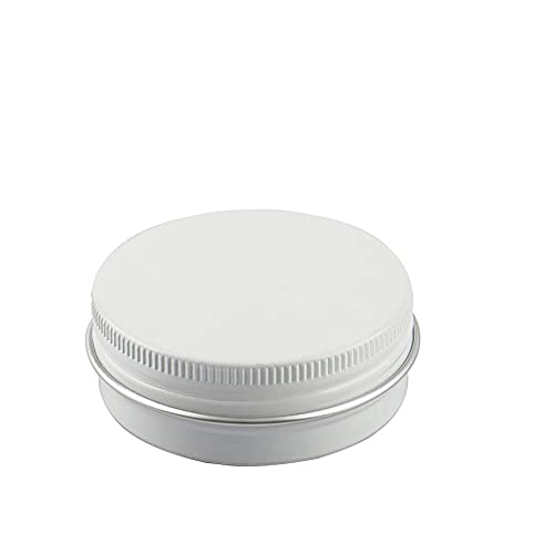 ZEOABSY 30 Pezzi Barattoli di alluminio 60ml a Vite Bianca Scatola in Alluminio Forma Rotondo, Vasetti per DIY Candele Cosmetico Caramella Gadget Balsamo Labbra, 2x Etichette e 5x Spatola