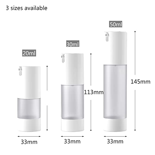 ZEOABSY 6 Pezzi Flacone Airless Trasparente Opaco da 20 ml con Dosatore Bianco, Vuoto Bottiglia per pompa Airless Contenitori per Cosmetici Viaggio - NESSUN TUBO INTERNO - RICARICABILE