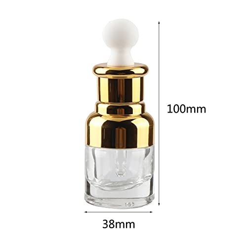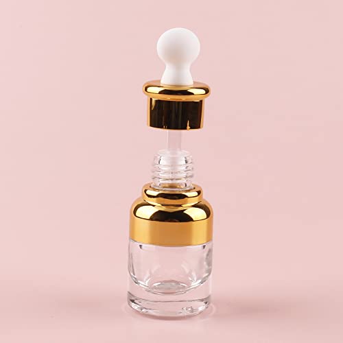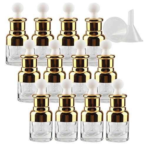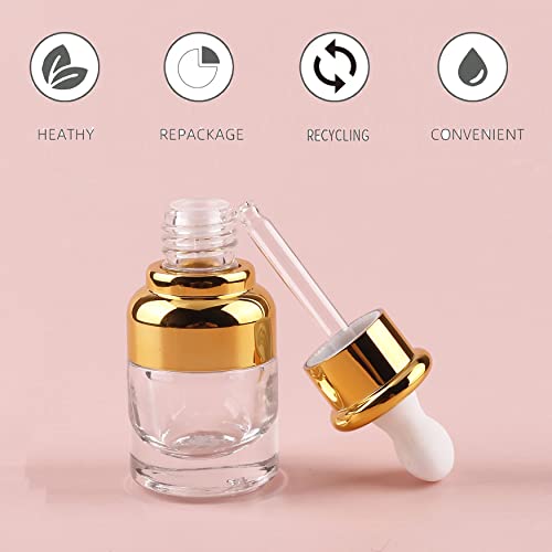 ZEOABSY 12 Pezzi Lusso Trasparente/Oro Bottiglie Contagocce di Vetro 20ml, Voute Bottigliette di Vetro con Pipette, Viaggio Portatile per Oli Essenziali, Contenitori di Aromaterapia