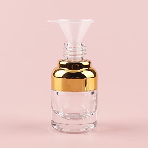 【 LA CONFEZIONE COMPRENDE 】- 12 Pezzi flaconi contagocce in vetro Trasparente da 20 ml con pipette in VETRO e anello a vite Oro+ 1 imbuti