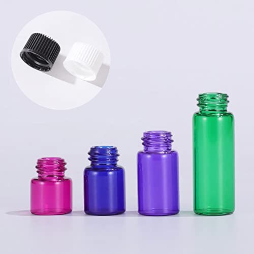 ZEOABSY 100 Pezzi Mini Bottiglietta di Vetro per Oli Essenziali da 3 ml Fucsia Bottiglia con Riduttore e Tappo Nero, Contenitori di Aromaterapia, Bottiglia Campione Viaggio