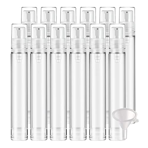 ZEOABSY 12 Pezzi Mini Flacone Airless Trasparente da 15 ml con Dosatore Trasparente, Vuoto Bottiglie di Pompa Contenitori per Cosmetici Viaggio - NESSUN TUBO RICHIESTO - RICARICABILE