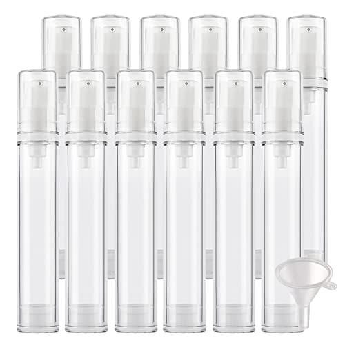 ZEOABSY 48 Pezzi Mini Flacone Airless Trasparente da 15 ml con Dosatore Bianco, Vuoto Bottiglie di Pompa Contenitori per Cosmetici Viaggio - NESSUN TUBO RICHIESTO - RICARICABILE