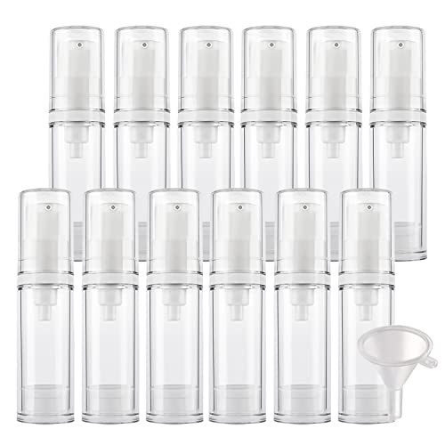 ZEOABSY 48 Pezzi Mini Flacone Airless Trasparente da 5 ml con Dosatore Bianco, Vuoto Bottiglie di Pompa Contenitori per Cosmetici Viaggio - NESSUN TUBO RICHIESTO - RICARICABILE