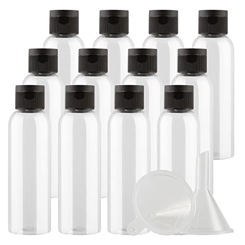 ❤【CONTENUTO 】- 12 Pezzi Rotondo 120 ml tubo di plastica Trasparente con Tappo Flip Top Nero, 2 pezzo Imbuto.