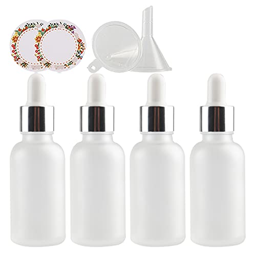 ZEOABSY 4 Pezzi Trasparente Opaco Bottiglie Contagocce Vetro 30ml, con Pipette Contagocce Vetro,anello a vite Oro, per Laboratorio,Olio Essenziale, Aromaterapia +1 imbuti +4 etichetta