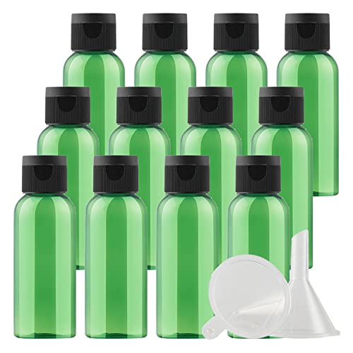 ZEOABSY 12 Pezzi 50 ml Verde Bottiglie di plastica PET con Tappo Flip Top Nero, Rotondo Vuoto Contenitori per Cosmetico, Bottiglie da Viaggio per Lozioni, Liquido, Olio