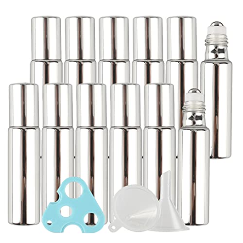 ZEOABSY Portatile 12 Pezzi Bottiglia da 5 ml in Vetro con argento rivestimento-UV vuoti roll-on Bottiglia con sfera in acciaio inox, per cosmetici cosmetici per oli essenziali e profumo, viaggi