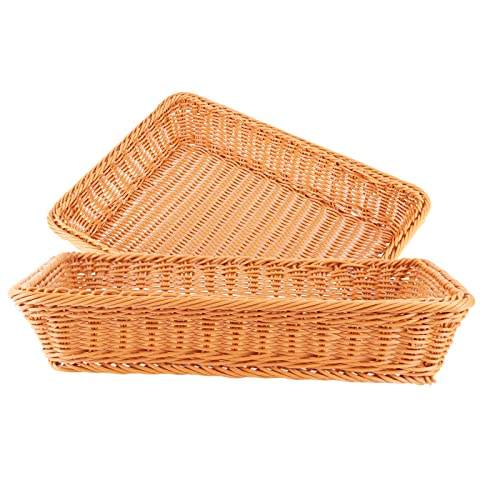 ZEONHAK Confezione da 2 cestini da tavolo da 40 cm, in vimini sintetico, per pane, frutta, verdura, snack, fatti a mano
