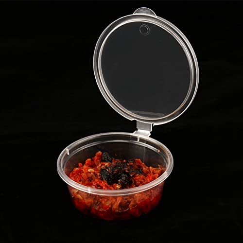 ZEONHEI 200 vasetti per salsa trasparente con coperchio, in plastica trasparente, rotondi, con cerniera, piccoli contenitori da asporto, per salsa da ketchup, ristoranti, confezione da 200 pezzi