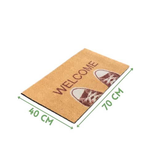 Zerbino d'ingresso casa con un design originale e divertente di sneakers e con la scritta "Welcome". Antiscivolo, previene lo scivolamento e aiuta a mantenere la casa asciutta e pulita.