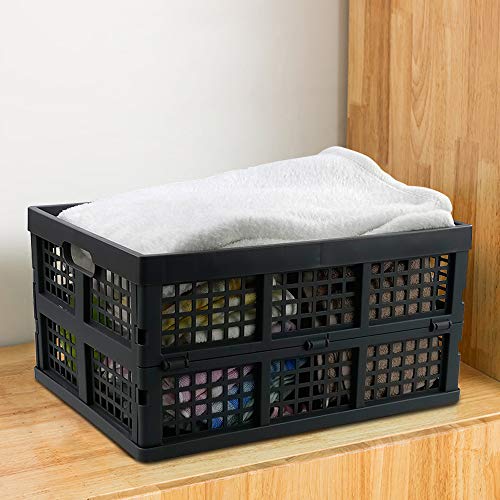 Zerdyne Set di 3 casse portaoggetti pieghevoli in plastica grigia da 30 litri, cestello portaoggetti pieghevole e impilabile