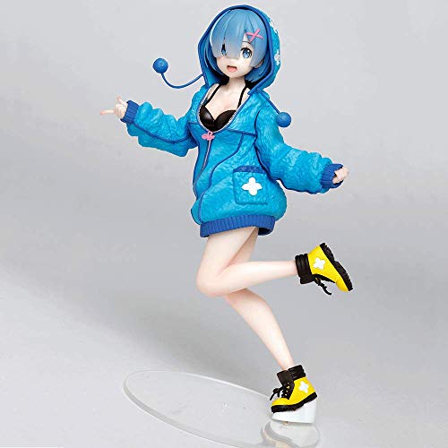 RE: Zero Figura di azione, Felpa con cappuccio blu da 7.1 pollici Versione Rem Figure, Postura in piedi, Kit per garage anime in materiale PVC, Bambola da ragazza per la decorazione Collezione