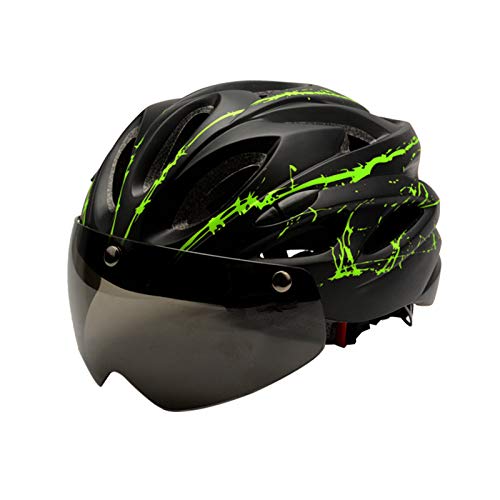 Zeroall Casco Bici Casco da Bicicletta Regolabili 56-62cm Donna Uomo Mountain Bike Helmet con Occhiali Magnetici Staccabili, Casco da Ciclismo per Bicicletta Scooter Skateboard(Nero Verde)