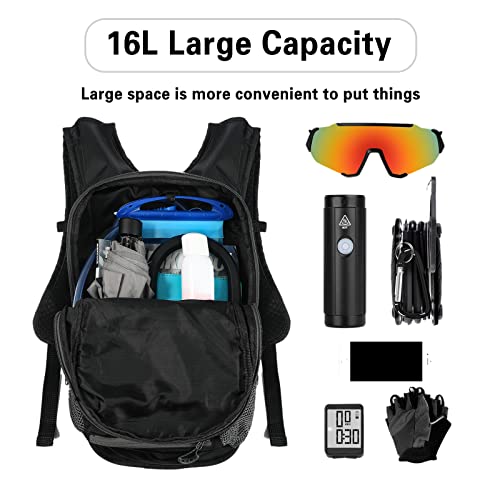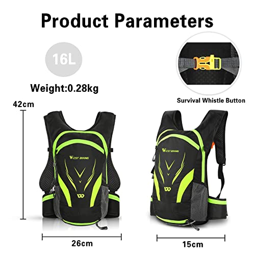 Zeroall Zaino da Ciclismo 16L Uomo Donna Ultraleggero Traspirante Zaino da Bici MTB Zaini Spalla Traspirante Zaino per Campeggio Trekking con Maglia di Stoccaggio del Casco(Nero Verde)