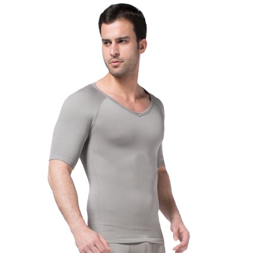 ZEROBODYS Magliette da Uomo Comodo Compressione Scollo a V Dimagrante Grigio SS-M03 (M)
