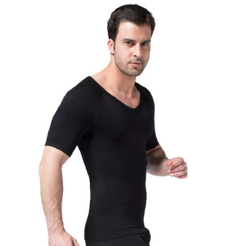Zerobodys Magliette da Uomo Comodo Compressione Scollo a V Dimagrante Nero SS-M03 (XL)