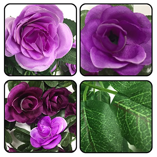 Zerodeco 4 Pezzi Artificiale Rose Seta Fiore con Foglia di Vite plastica Appeso Vite Ghirlanda Artificiale Flora Corona per la casa Yard Fence Wedding Garden Decorazione - Viola e Lilla