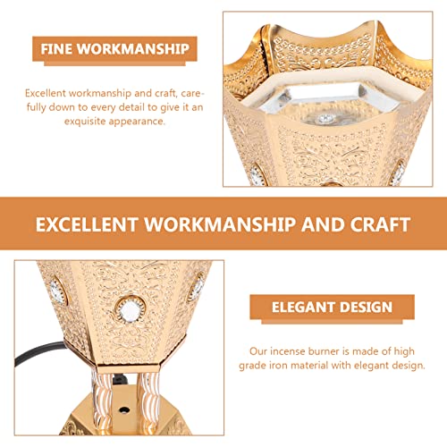 Zerodeko Bruciatore di Incenso Elettrico di Bakhoor Oud Bruciatore di Resina di Frankincense Golden