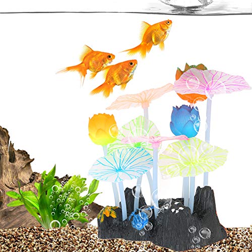 Zerodis Acquario Pianta artificiale morbida, Simulazione di fluorescenza colorata Piante acquatiche per acquario Decorazione del paesaggio(6 foglia di loto + 3 fiori di loto)