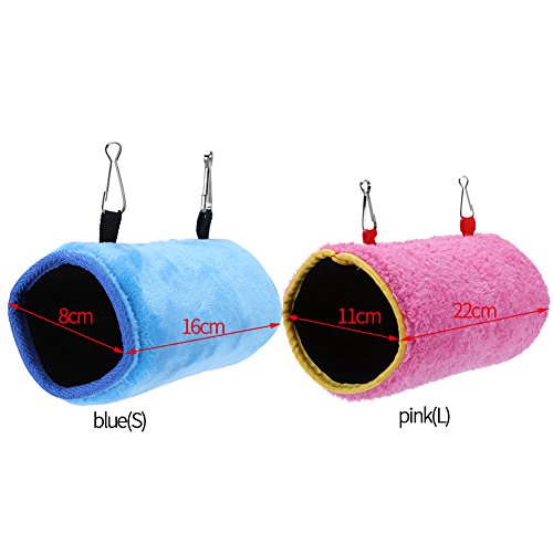 Zerodis Amaca per criceti Piccoli Uccelli da Compagnia, Tunnel di Peluche Caldo e Tubo Piccoli Animali Gabbia per Uccelli da Compagnia Letto sospeso per pappagalli Scoiattolo(S-Blu)
