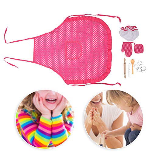 Zerodis Bambini Cooking Cooking Set Fai da Te Cucina per Bambini Gioco di Ruolo Giocattolo con Grembiule da Cucina Giocattoli Regalo Regalo per Neonate(Rosso)