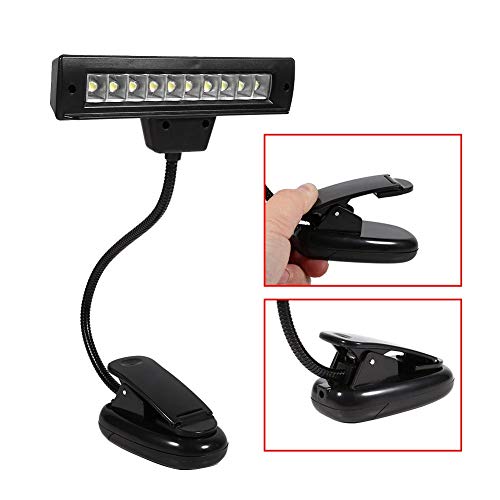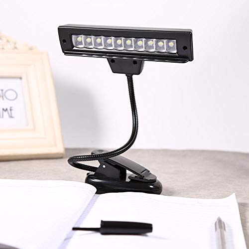 Zerodis Clip On Book Light, portatile 10 LED Clip-On Music Stand Luce di lettura morsetto USB Ricaricabile Buona protezione degli occhi Luminosità per notturna(2# Lampada + cavo USB + adattatore)