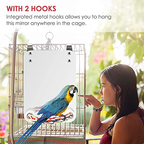【Dimensioni ragionevoli】 5 x 7 pollici. Questo specchio è molto grande e può sopportare alcuni uccelli. Lo specchio per uccelli di questo pappagallo è progettato appositamente per uccelli di taglia medio-grande.