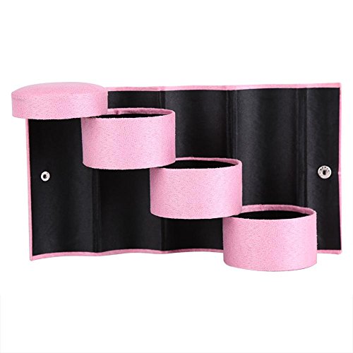 Zerodis Scatole Portagioie Flanella Portatile Del Cilindro 3 Strati Roll Up Per Gli Anelli Degli Orecchini Della Collana(Rosa)