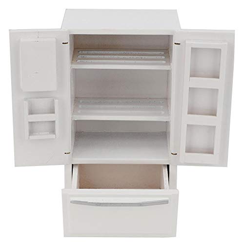 Zerodis 1:12 Simulazione Frigorifero in Legno Modello Giocattoli Casa Bambole Miniatura Mobili Mini Accessori da Cucina Giocattoli Vita Scena Ornamento Compleanno Natale Regalo per Bambini (Bianca)