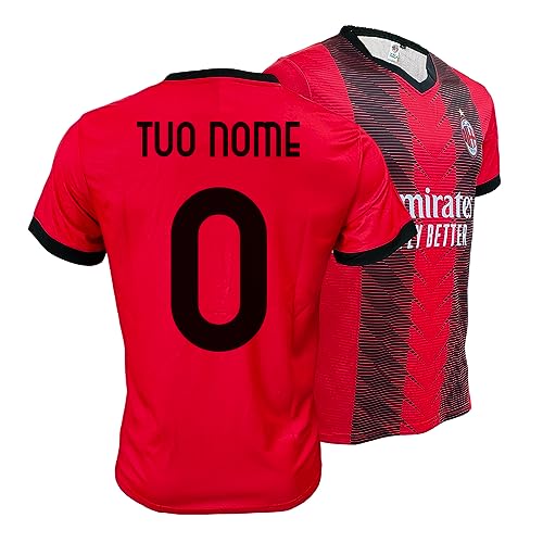 ZeroPlayer Maglia Milan Personalizzabile Home 2022 2023 Replica Ufficiale, Rosso, Nero, 100% Poliestere, Large