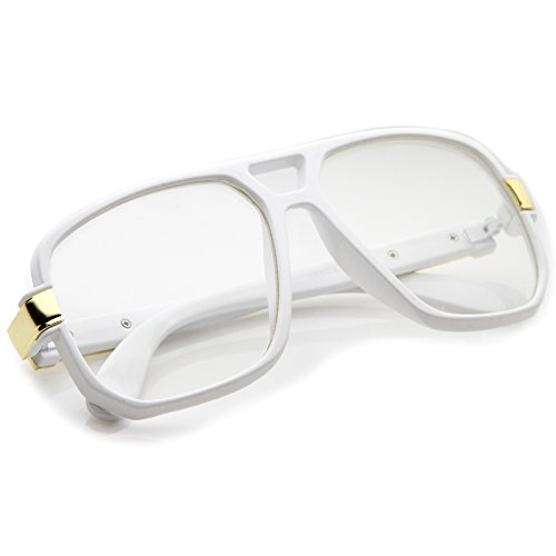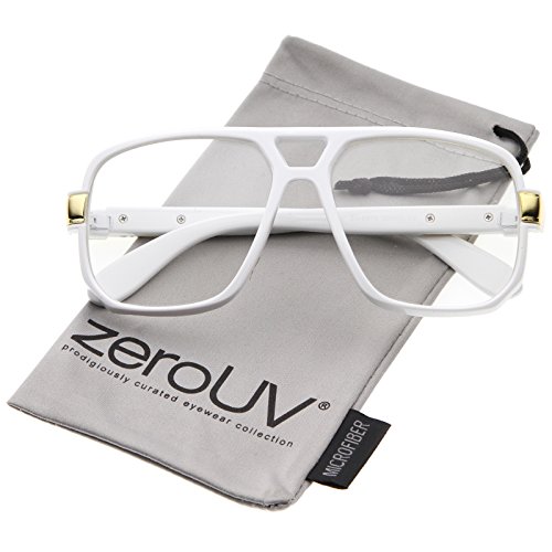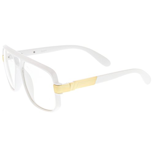 ZeroUV - Occhiali da aviatore classici con parte superiore piatta in metallo, lenti trasparenti e quadrate, 56 mm