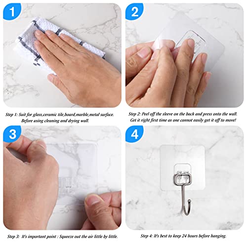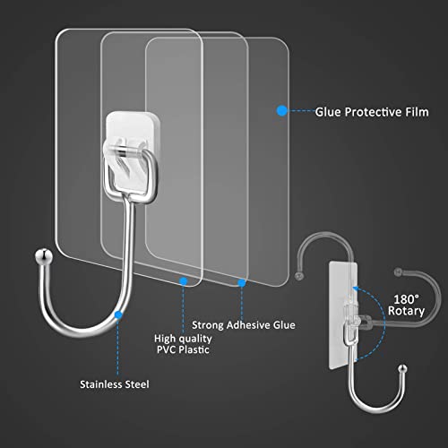 Zesc-Im Ganci autoadesivi da 10 PCS 44 libbre/20 kg (max) Ganci da parete per impieghi gravosi, ganci appiccicosi di grandi dimensioni rimovibili, robusti ganci trasparenti per la casa, il bagno