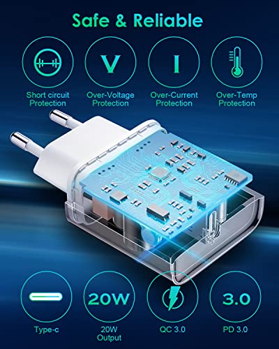 ZESKRIS - Caricatore USB C da 20 W, alimentatore PD 3.0 USB C Charger e QC 3.0 USB C Power Adapter da parete per i Phone 14/14 Plus/14 Pro/14 Pro Max/13 Pro Max/i Pad, Galaxy S21