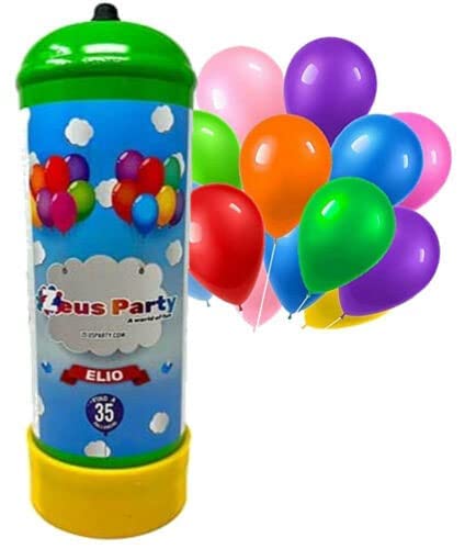 Zeus Party Elio per palloncini - Kit Bombola gas elio per gonfiaggio palloncini per feste e party di ogni genere PALLONCINI COMPRESI (Bombola per il gonfiaggio di 30/35 Palloncini)