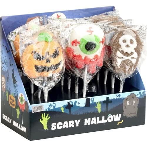 Zeus Party Box di Scary Mallow Confezione da 12 Marshmallow Zuccherati di Halloween a Forma di Zucca Teschio e Occhio