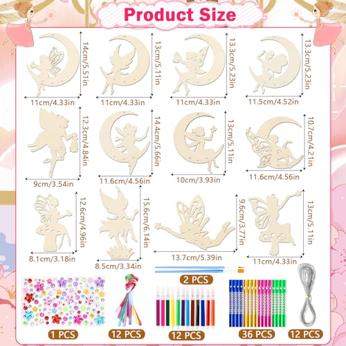 Zeuwets Kit Fairies in Legno, 12 Pezzi Campanelli a Vento per Bambini, Fairies Principessa Fai Da Te, Lavoretti Creativi Giocattoli, Regalo di Compleanno di Natale per Ragazze 3 4 5 6 7 8 9 10 Anni