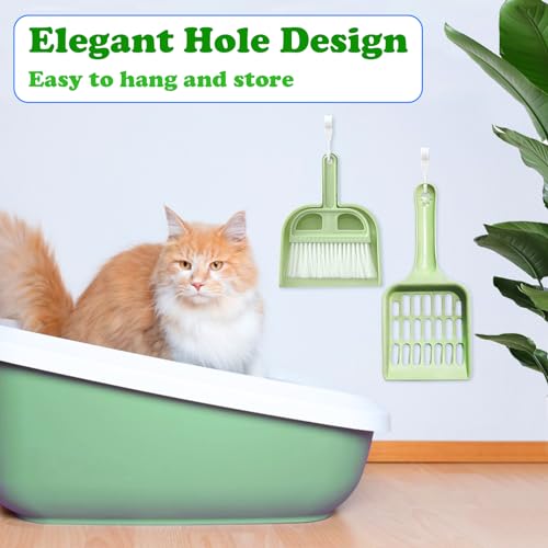 Zeuwets Paletta per Lettiera per Gatti, Paletta per Lettiera in Plastica, Paletta per Lettiera con Piccolo Set di Scope, Pala per Lettiera a Manico Lungo per Lettiere per Gatti (Verde)