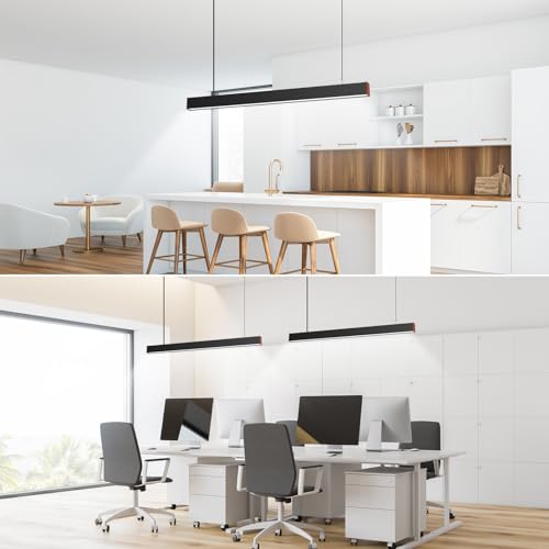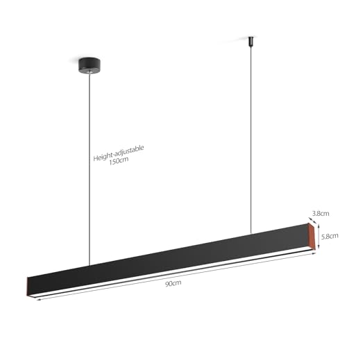 Zewanny LED Lampada a Sospensione Nera Moderna,Sospensione 150CM Altezza Regolabile con Superficie Opaca in Metallo,lampada lineare per ufficio sala da pranzo Soggiorno cucina,4000K 36W L90CM