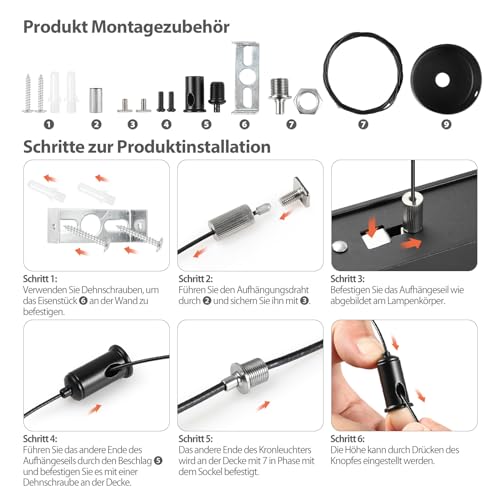 Altezza regolabile: La larghezza di sospensione della lampada a sospensione può essere selezionata. Questa lampada da scrivania ha 2 cavi regolabili di 150cm, e l'alta luminosità del proiettore è sufficiente per illuminare una grande area, fornendo un ambiente luminoso
