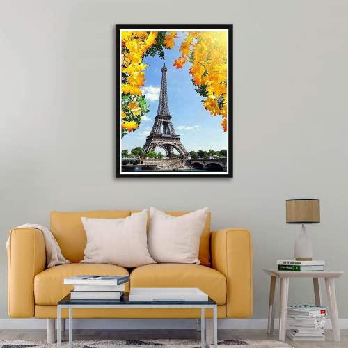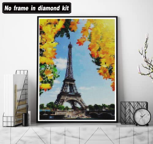 Zeyevan Fai da Te Kit Diamond Painting Completo Torre Eiffel, Pittura Diamante 5D Kit Foglie d'Autunno Ricamo a Punto Croce con, Decorazione in Tela Decorazione da Parete 30x40 cm