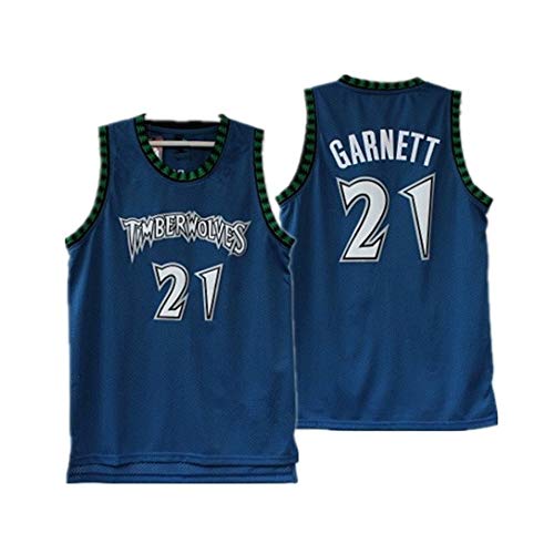 ZeYuKeJi Jersey-NBA Uomo Timberwolves # 21 Garnett Garnett Maglia Ricamo Pallacanestro Jersey Maniche T-Shirt (Color: Blue, Size: XXL)