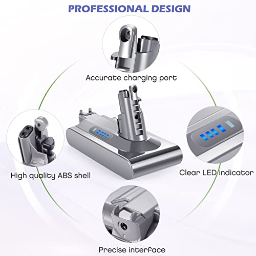 【Aggiornare una Capacità più Alta】Tipo di batteria: ione di litio | Tensione della batteria: 25.2 V | Alta capacità: 3800 mAh. Realizzati con celle a batteria al litio di alta qualità con un'alta capacità di 3800 mAh, offre un'eccellente potenza di aspirazione per il tuo aspirapolvere Dyson.