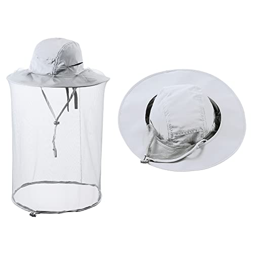 ZffXH Cappelli per Insetti da zanzara, Cappello da Pesca Safari con Rete in Rete per Il Viso, Apicoltore Apicoltore Velo per Uomo Donna, Light Grey, L