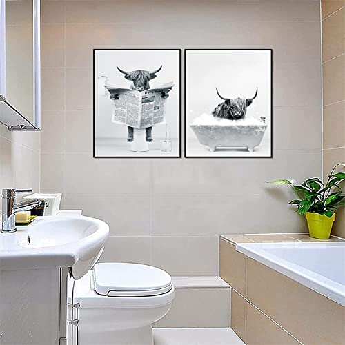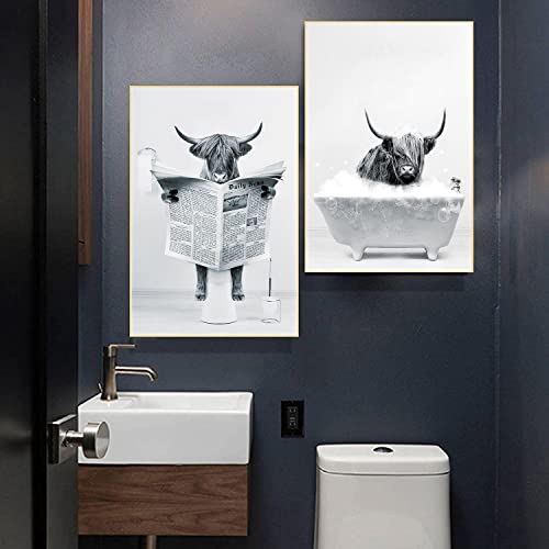 Dipinto murale divertente con mucca altolandese: la simpatica mucca su tela è perfetta per decorare il tuo bagno o la toilette, è adatta anche per decorare i bagni dei bambini. Poster