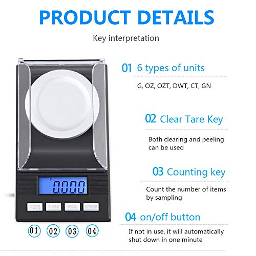 ZH-VBC Bilancino di Precisione 0.001 Professionale, Bilancia da Cucina, 20g/50g/100g X 0.001g Bilancia di Precisione Digitale, Mini Scala di Tasca Digitale per Il Cibo, Gioielli,100g/0.001g