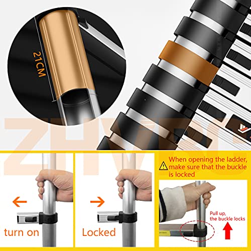 ★ SICURO E AFFIDABILE: il scala telescopica con ganci è realizzato in lega di alluminio leggera e resistente. Ogni gradino è dotato di serratura indipendente. È possibile regolare facilmente i gradini per raggiungere e ritrarre qualsiasi altezza desiderata.